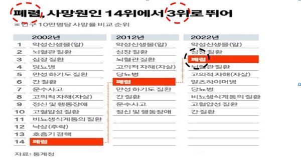 환자 : "폐렴이 겁나는 것은 알았지만, 이렇게 3위라는 것은 지금 처음 들었어요!"