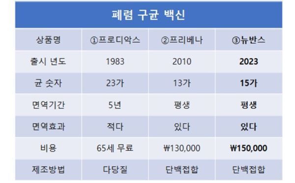 오늘 소개하는, '뉴반스'라는 신상 폐렴 vaccine은, 국내에서 가장 최근인 지난해 출시된 세 번째 폐렴 백신으로 이보다 앞서 출시된 2가지 제품보다 인체면역 형성 능력에서 차별화된 신상품이다.