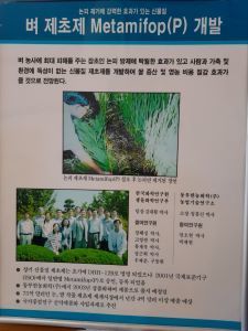 수입 약제에 비해 3배 이상 강력한 약효로 스프레이로 방제할 수 있는 친환경 신물질 '메타미포프'(Metamifop)개발에 성공, 제초제 신물질 개발 상품화의 방점을 찍는다.