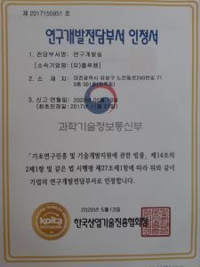 특히 환경의 심각성으로 알레르기 비염 인구도 증가하는 추세로, 비강 분무용 새로운 조성물로 세포독성시험, 동물독성시험, 바이러스 감염 효능평가 시험까지 마쳤고, 대전테크노파크 지원을 받아 약액을 분무하는 비강분무 디바이스를 통해 분무 기구도 개발했다.